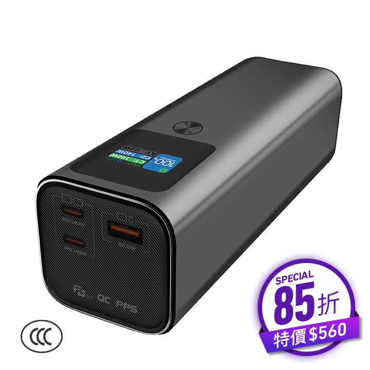 • 雙 USB Type-C 及 A 三輸出,配合雙 140W 高速接口可同時為兩部筆記本電腦充電
